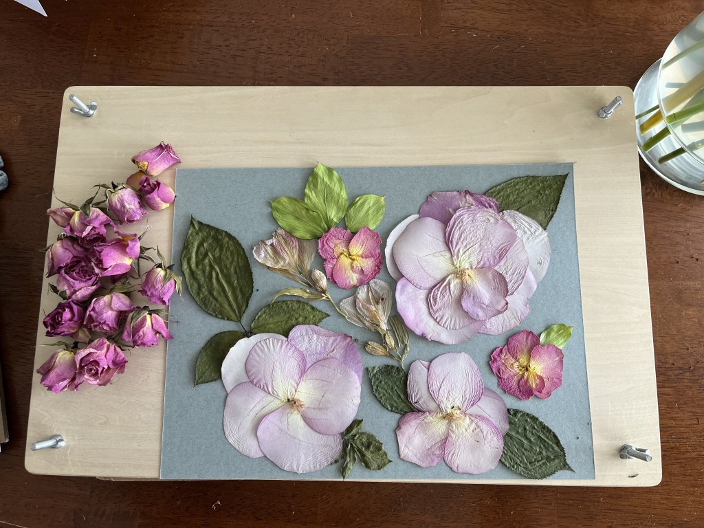 I am a botanical and mixed media artist based in Western New York. I am an avid gardener and press flowers and foliage from my own garden and use them to make unique designs. I have been pressing flowers and making art for three years after discovering my passion for saving the beauty within my garden. I also press bouquets, including wedding bouquets, to uphold their beauty and create timeless pieces that capture and preserve the special day and moment.